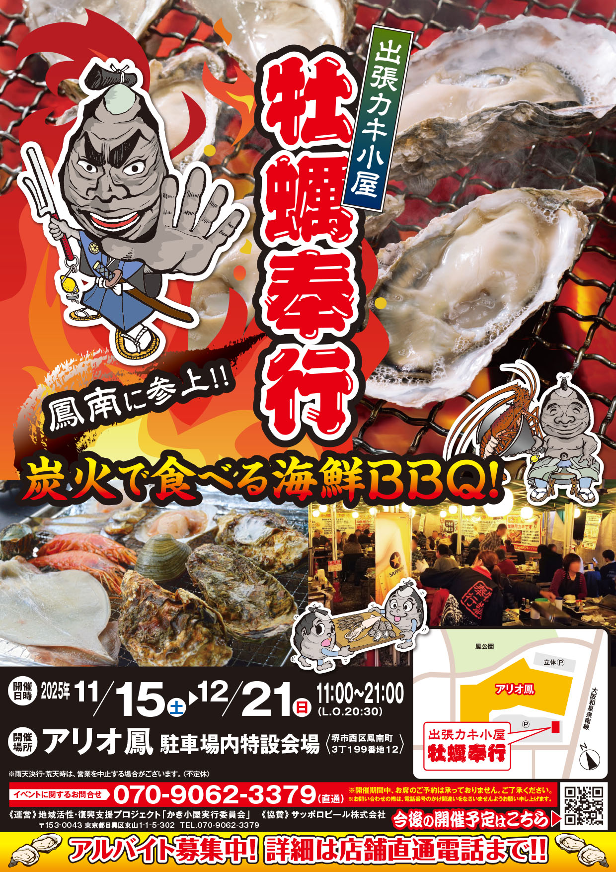 出張カキ小屋「牡蠣奉行」in アリオ鳳 2025年11月15日~12月21日開催