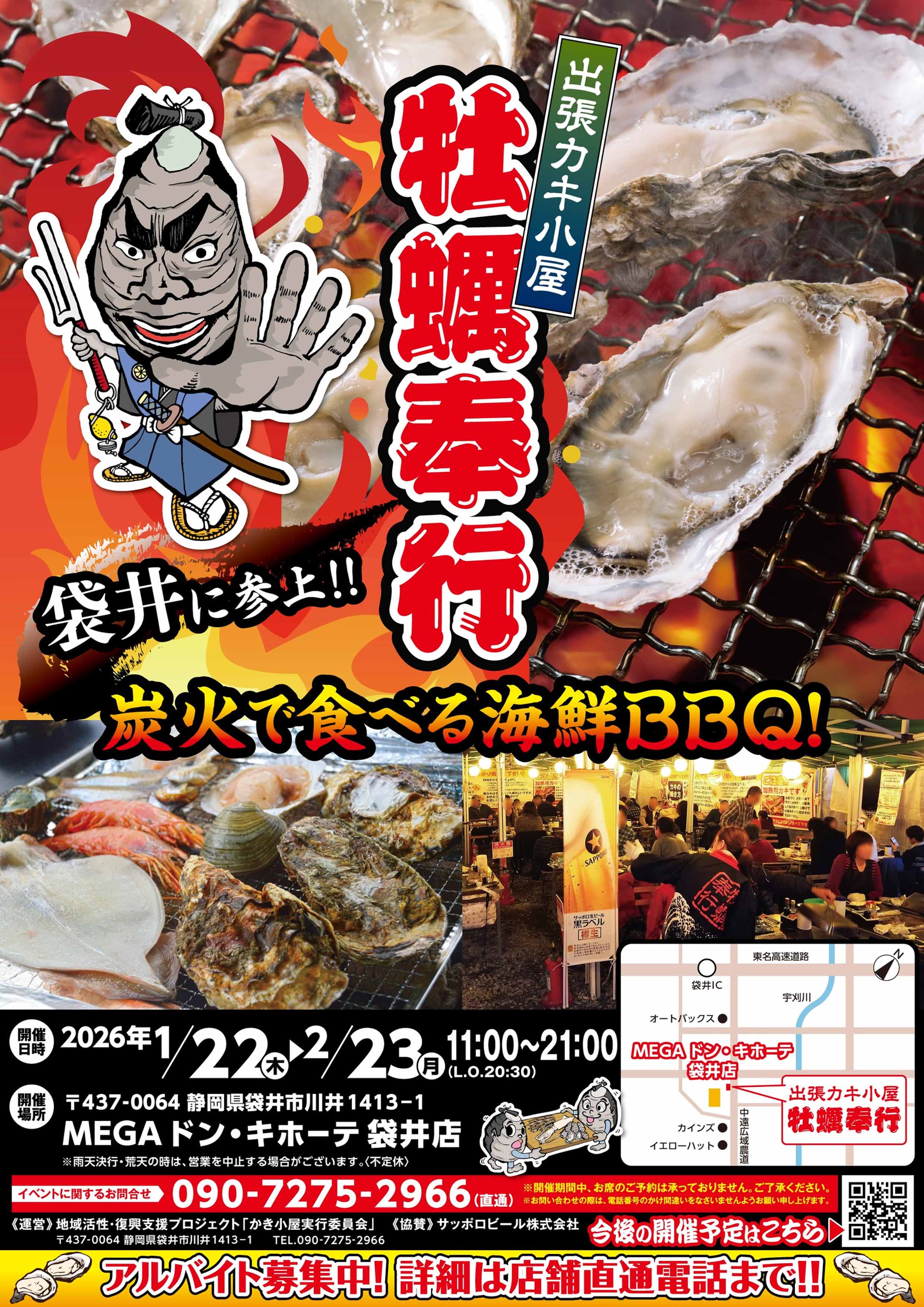 | 現場名 | 出張カキ小屋「牡蠣奉行」in MEGAドン・キホーテ袋井店 |