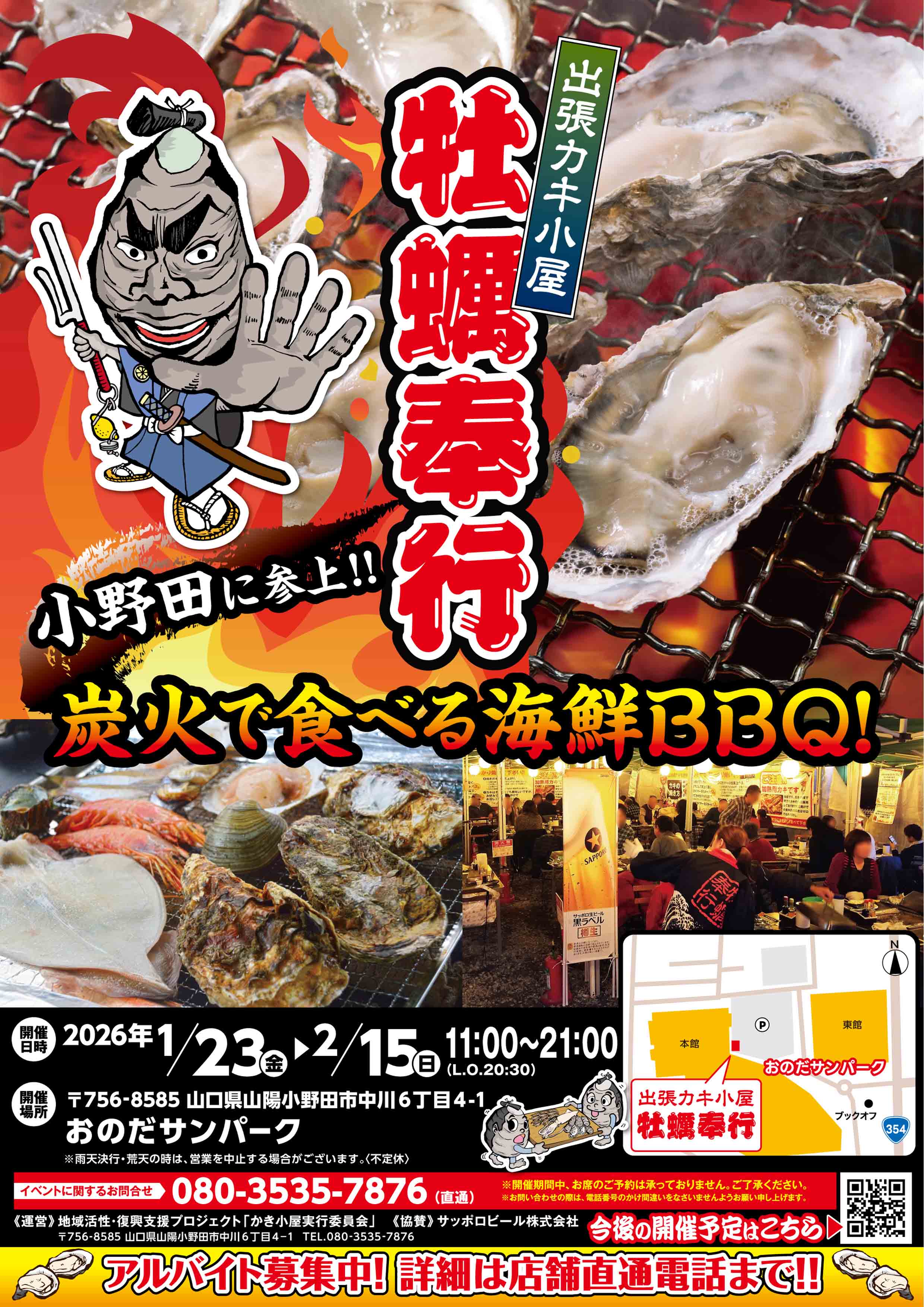 出張カキ小屋「牡蠣奉行」in おのだサンパーク|チラシ