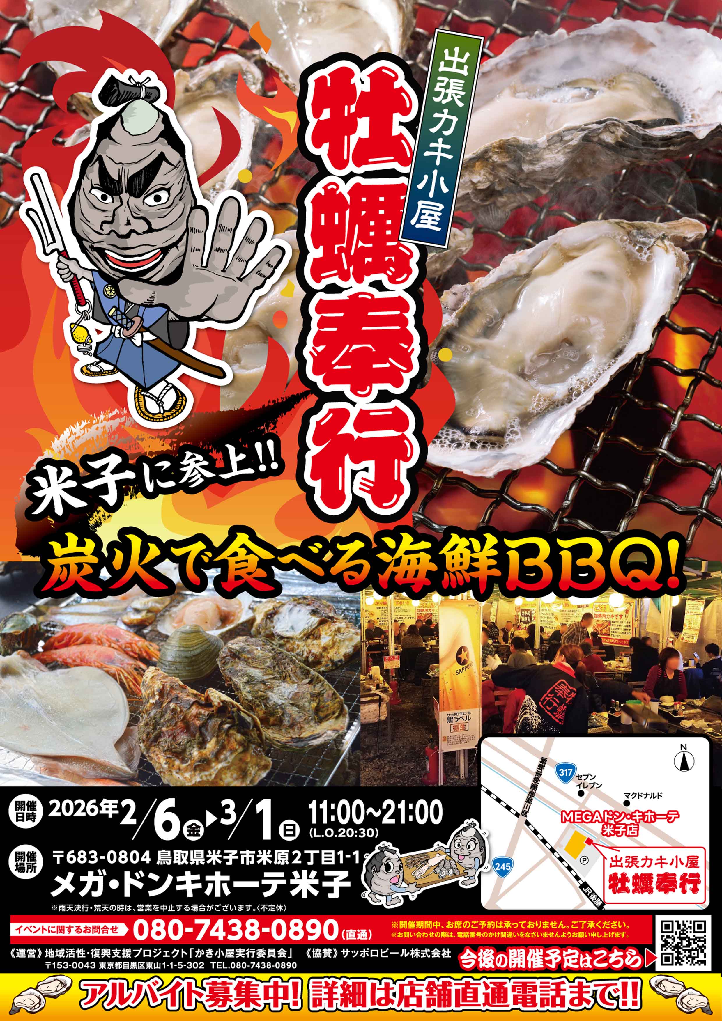 | 現場名 | 出張カキ小屋「牡蠣奉行」in MEGAドン・キホーテ米子 |