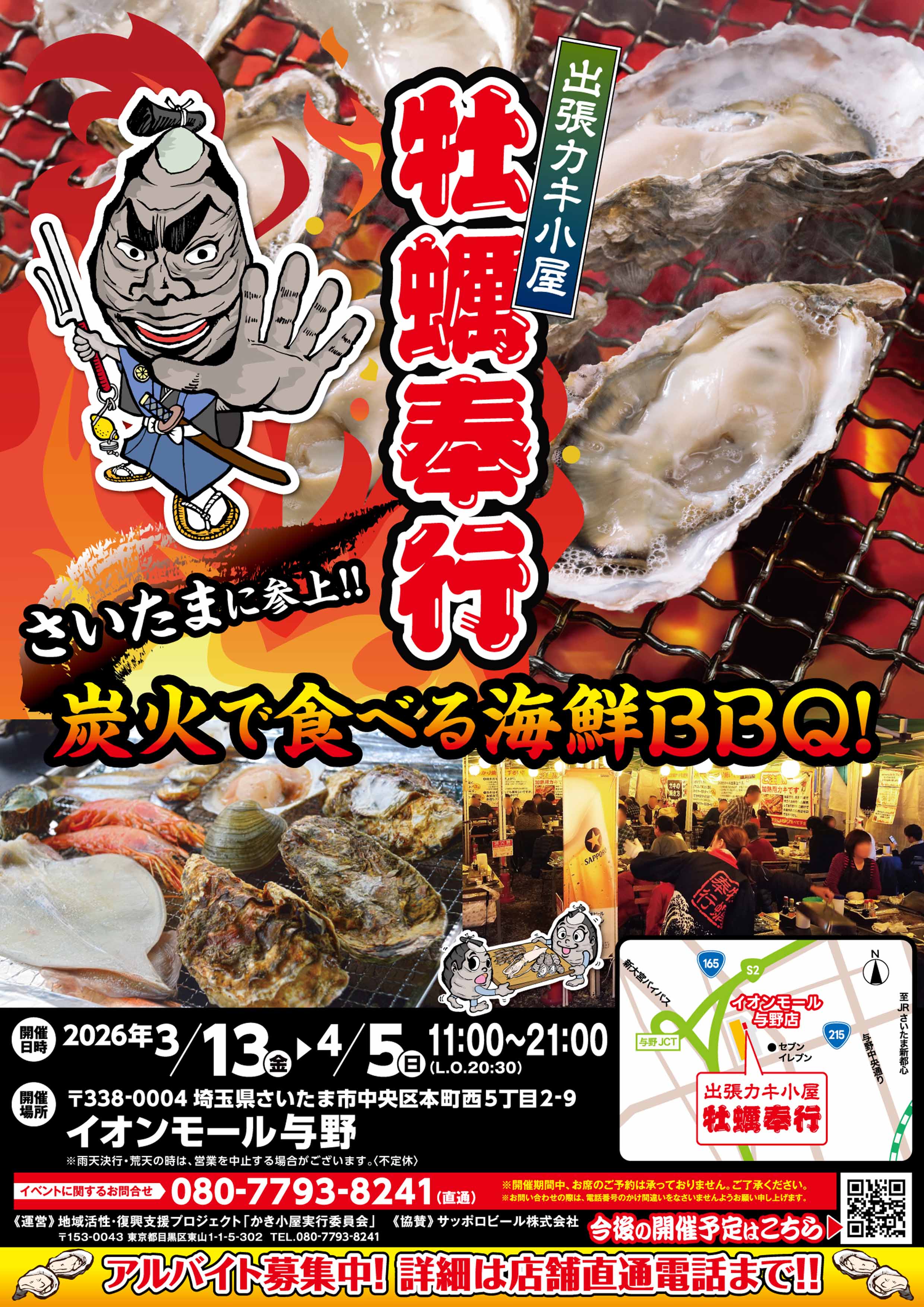 出張カキ小屋「牡蠣奉行」in イオンモール与野 2026年3月13日~4月5日開催