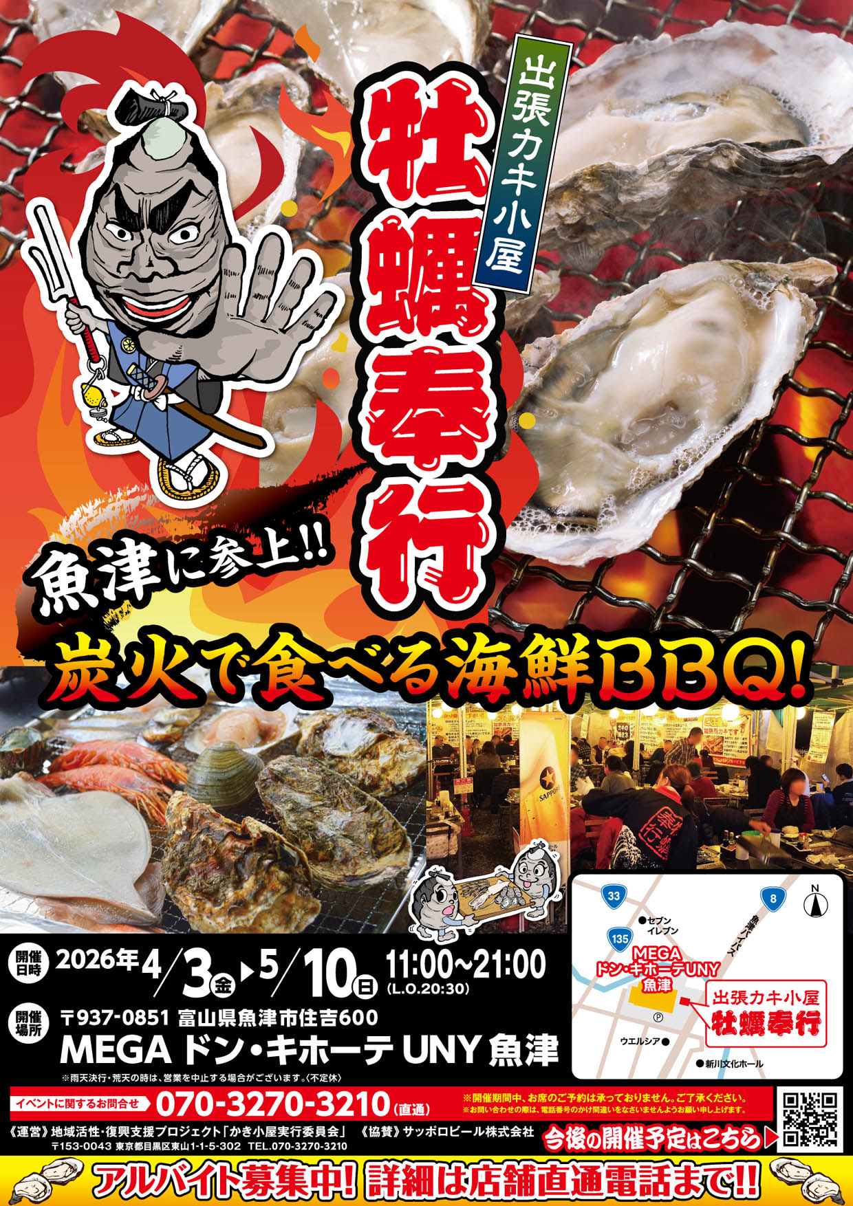 出張カキ小屋「牡蠣奉行」in MEGAドン・キホーテUNY魚津 2026年4月3日~5月10日開催